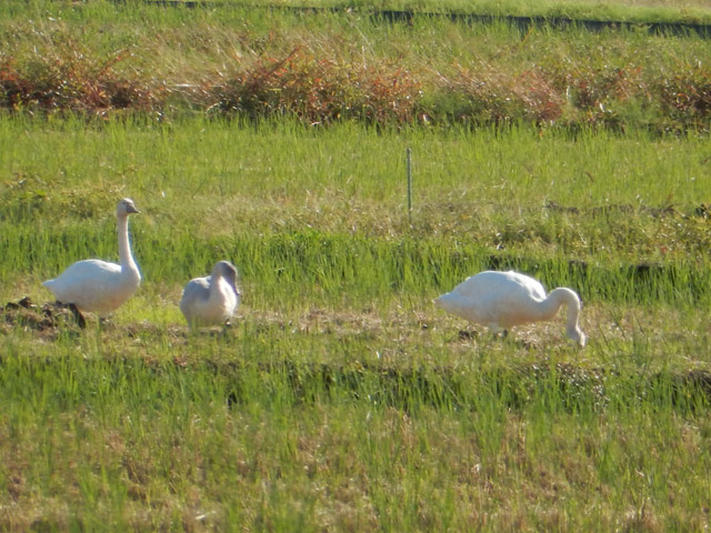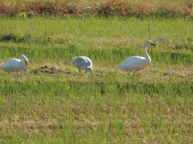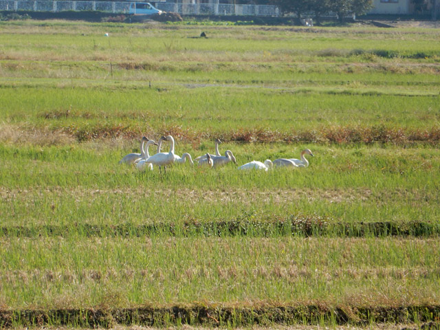 とてもいい天気になりました! 白鳥が田んぼに狩りに来てました。