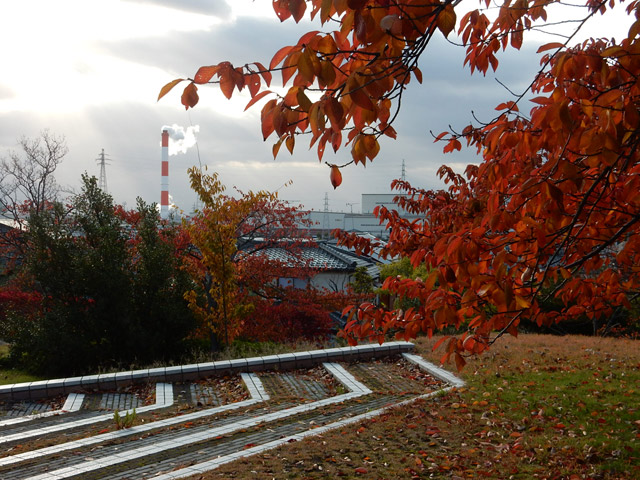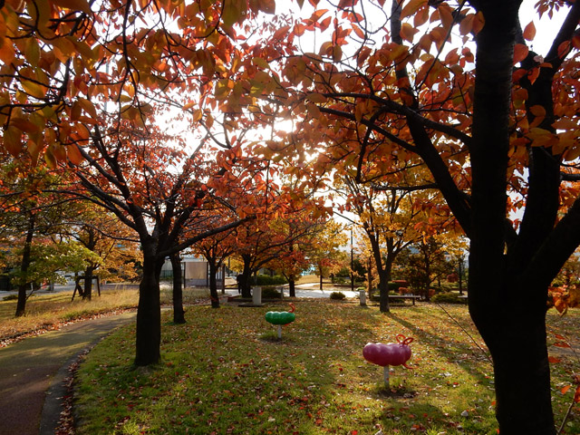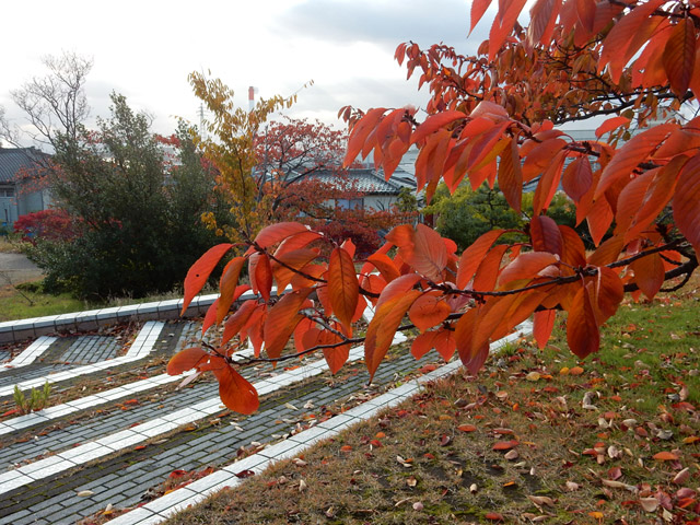 桜の葉も紅葉して、晩秋です。
