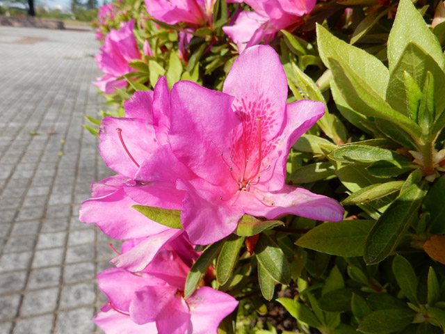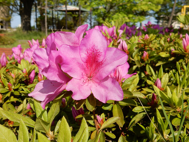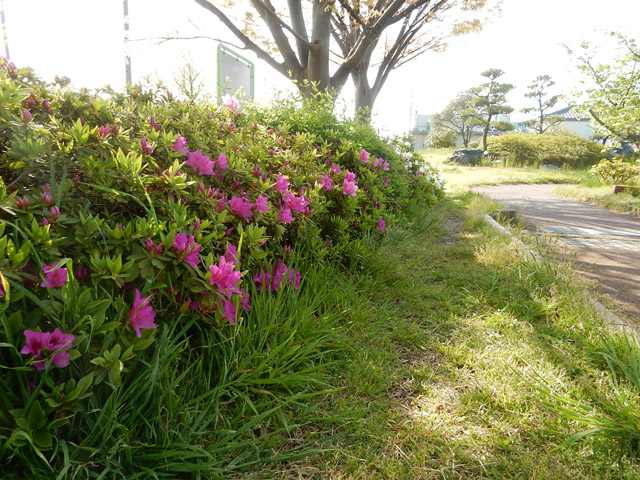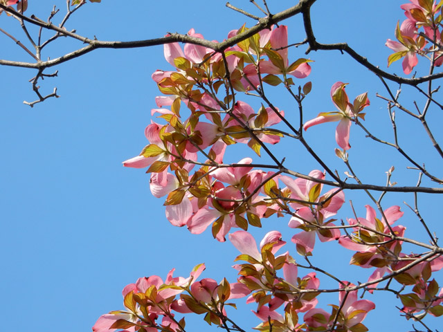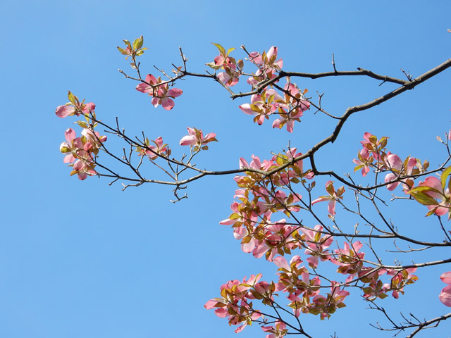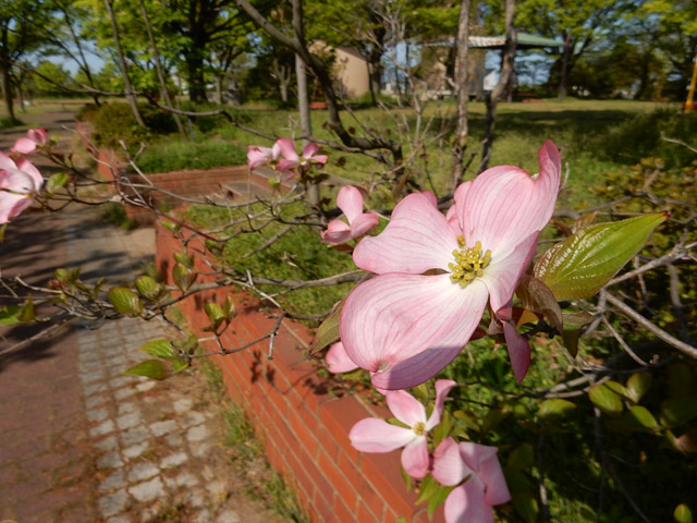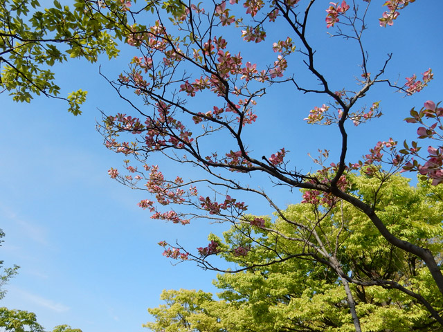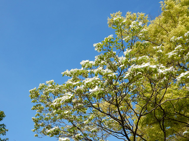 2017年5月4日8:00 場所:大山台公園から 5/4 晴れ 快晴です。気持ちのいい朝! 青空とハナミヅキの花のコントラストがきれい! |